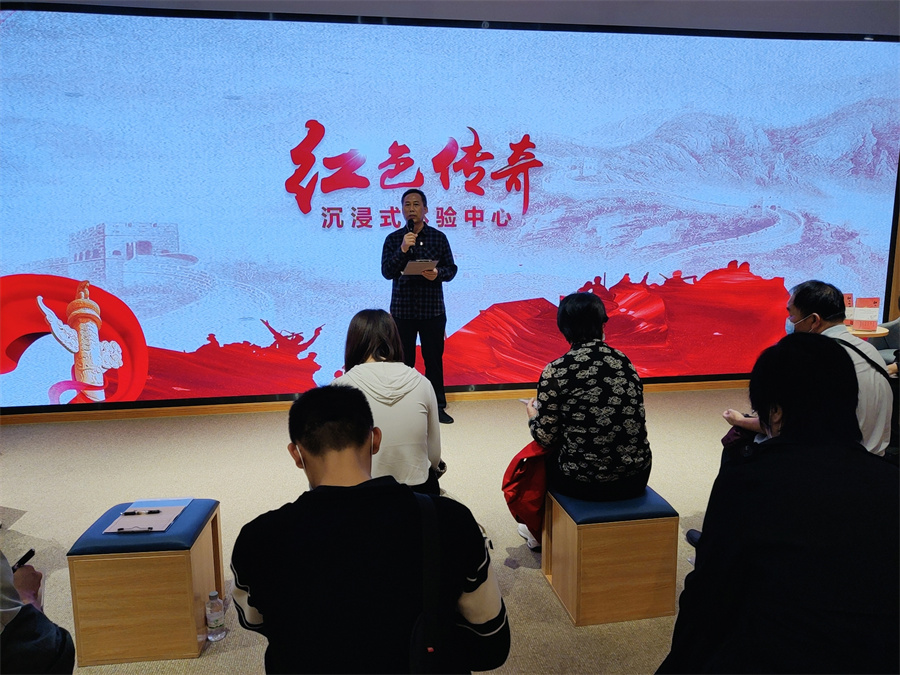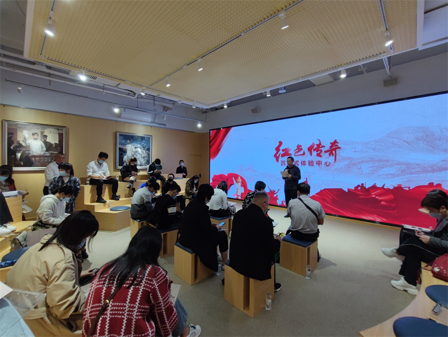 在麗竹學(xué)校黨支部書記王良友同志的帶領(lǐng)下,黨員代表李玲玲,入黨積極分子代表楊燕華一行人先跟著大部隊來到了《紅色傳奇》》沉浸式體驗(yàn)中心。