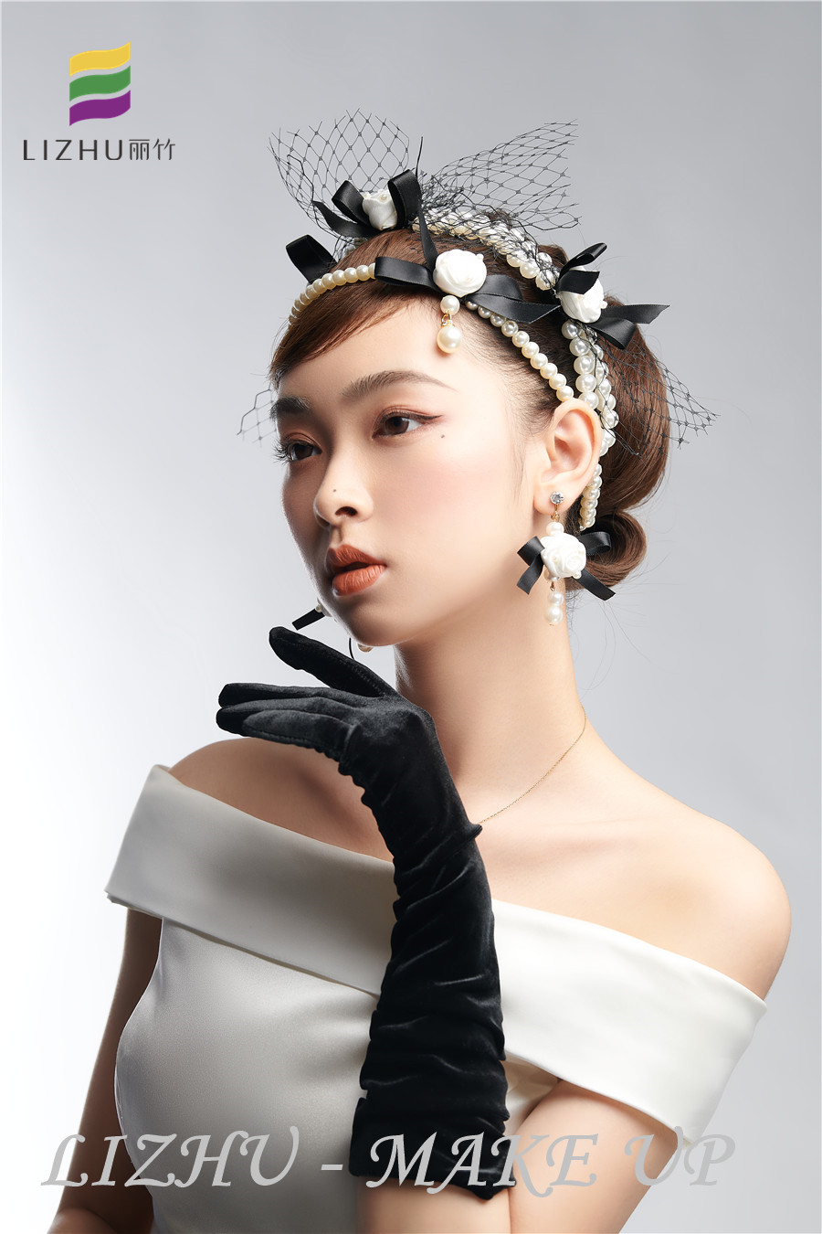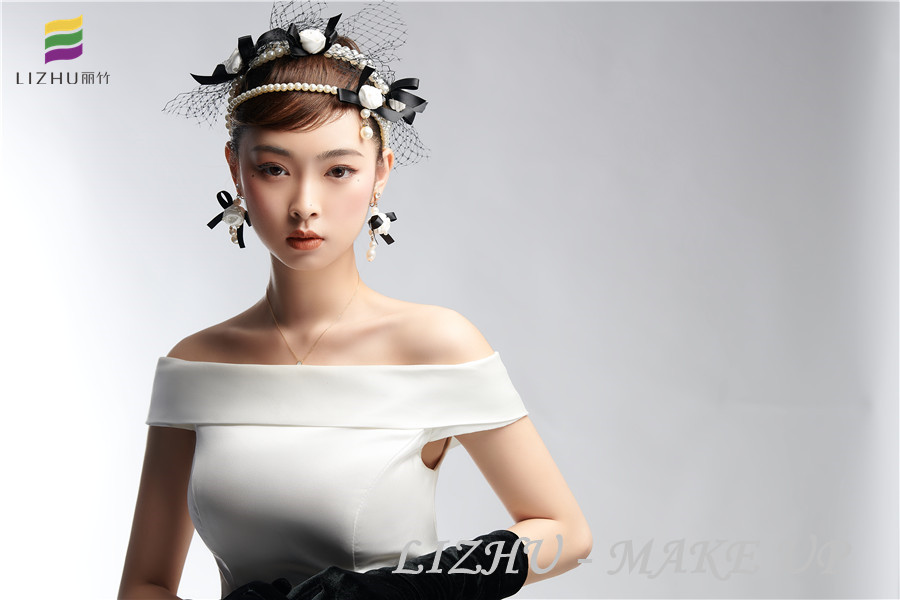 南寧彩妝美妝培訓(xùn)學(xué)校(麗竹彩妝學(xué)校)、南寧美妝培訓(xùn)機構(gòu)---簡約優(yōu)雅名媛造型:自然干凈的妝面打造輕薄裸妝感,簡約盤發(fā)佩戴網(wǎng)紗珍珠花朵頭飾,潔白無暇花朵耳飾清新亮眼,搭配白色綢緞面料半肩禮服,優(yōu)雅之中又不失少女的甜美??戳诉@些作品,想知道南寧有實力的化妝培訓(xùn)班,歡迎到麗竹彩妝學(xué)校了解課程。