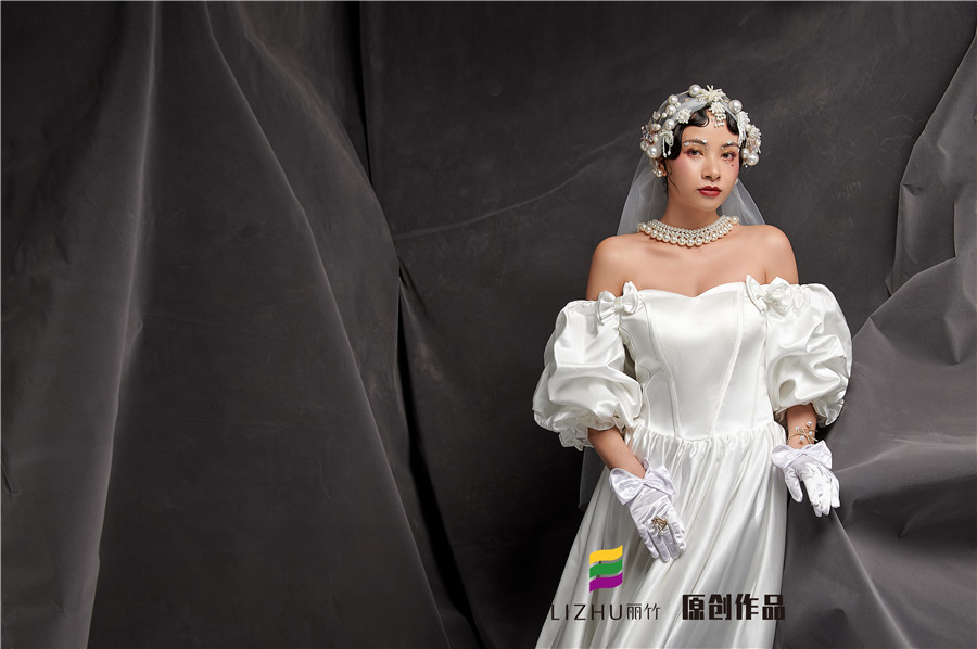廣西排名前十彩妝學(xué)校分享:麗竹學(xué)校彩妝作品---輕奢復(fù)古造型:潔白充滿設(shè)計(jì)感的禮服,珍珠點(diǎn)綴,星光點(diǎn)點(diǎn)的,是夢(mèng)幻與現(xiàn)實(shí)的交替。