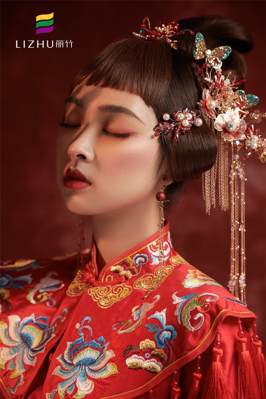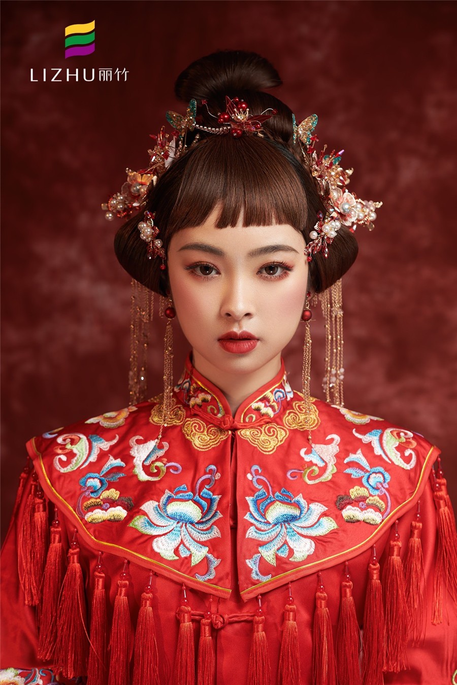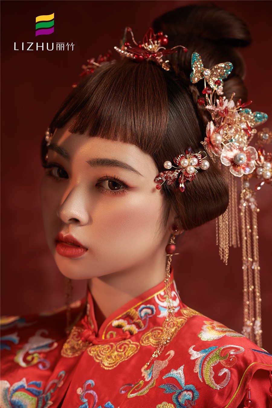 麗竹學(xué)校彩妝作品---中式秀禾新娘造型:蝶舞蹁躚,吉祥如意。極具東方魅力的色彩,妝造出獨特的國風(fēng)。一襲中國紅,端莊典雅,是千年沉淀下來的古韻悠長。