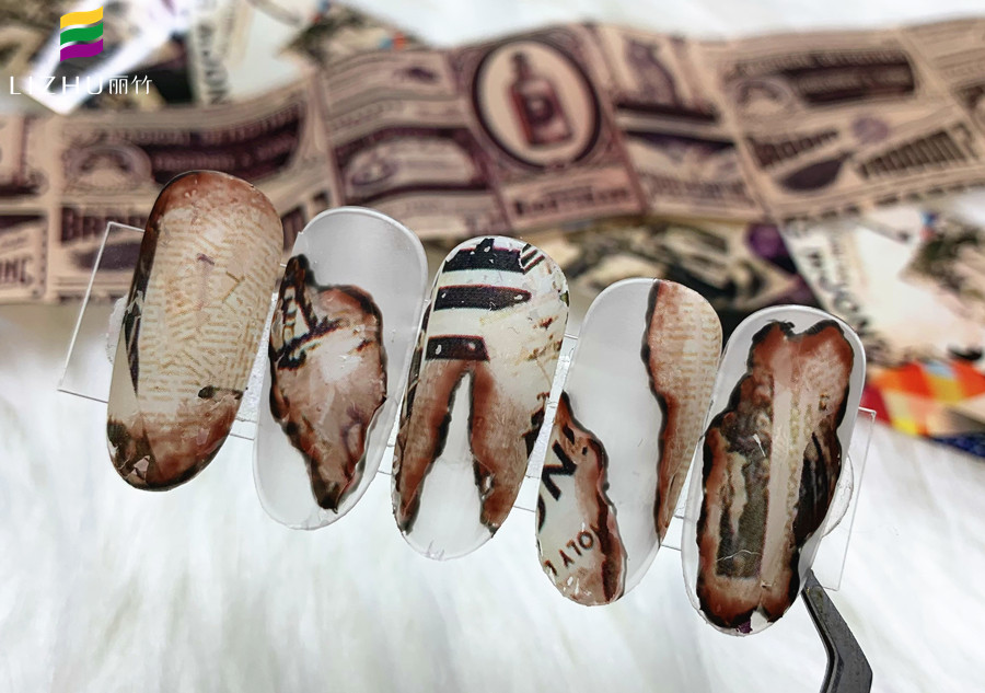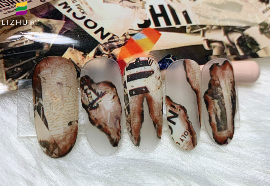 廣西美甲學(xué)校哪家招生多?麗竹美甲學(xué)校作品證明實力:舊報紙美甲(一)