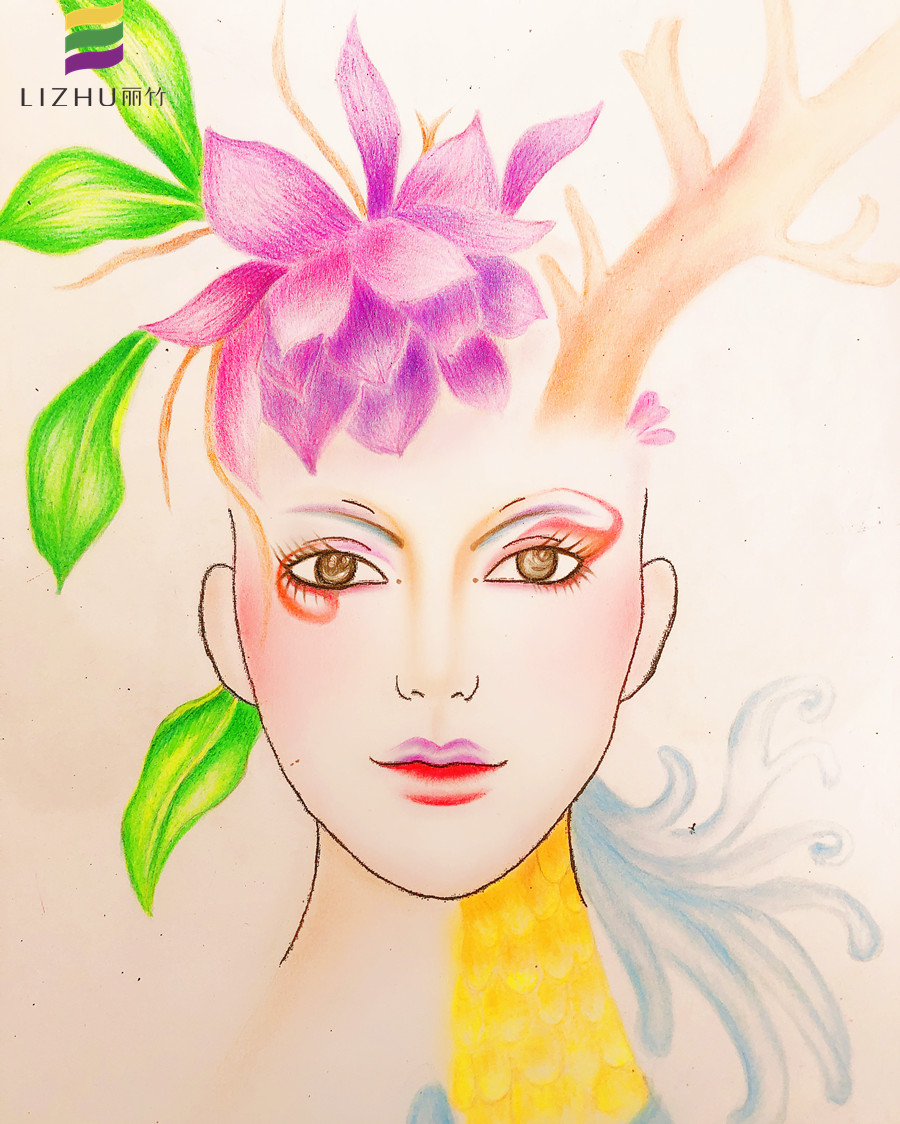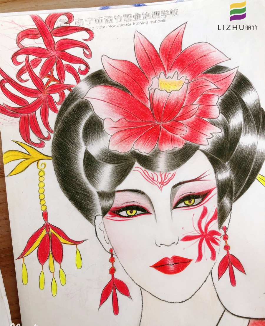南寧哪里可以學化妝基礎?請看麗竹學?;瘖y基礎作品:紙妝美人圖(一)