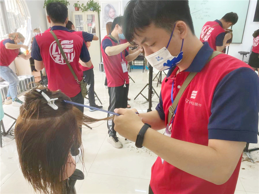 為了讓學(xué)員們可以更清楚,更詳細(xì)的看到剪發(fā)的手法,劉主任走到學(xué)員們的中間,重頭到尾再次演示了短發(fā)兩側(cè)層次修剪的手法。