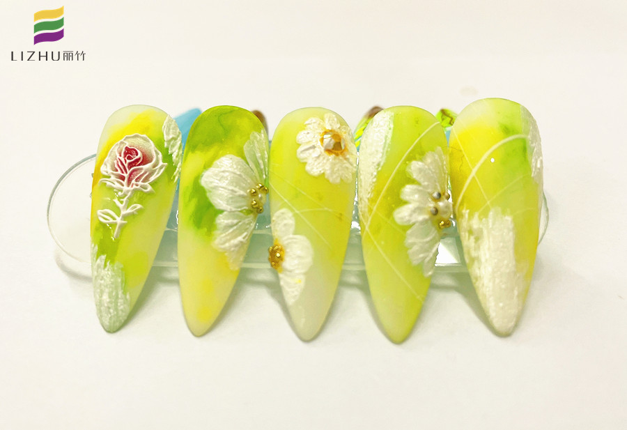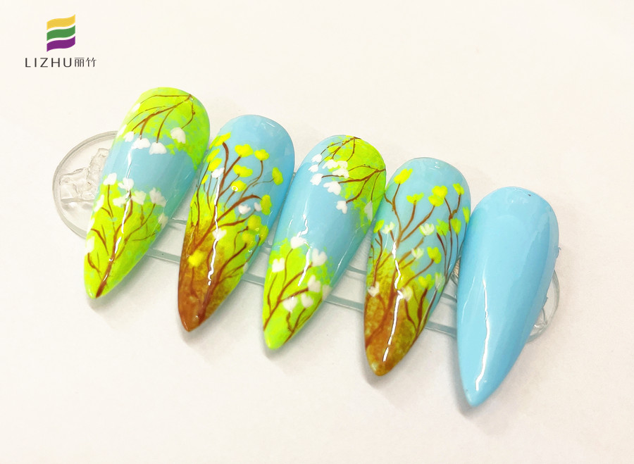 廣西時尚美甲培訓、廣西美甲學習、廣西美甲培訓機構(gòu):春日的代表色,怎么能少得了綠色,黃色,和藍色呢?如果讓你將這幾種顏色組合在一起繪制一幅春日美甲作品,你想好怎么創(chuàng)作了嗎?如果還沒有想好,不如就先看看廣西專業(yè)正規(guī)美甲學校(麗竹美甲學校)-廣西美甲學校一對一教學的作品吧!