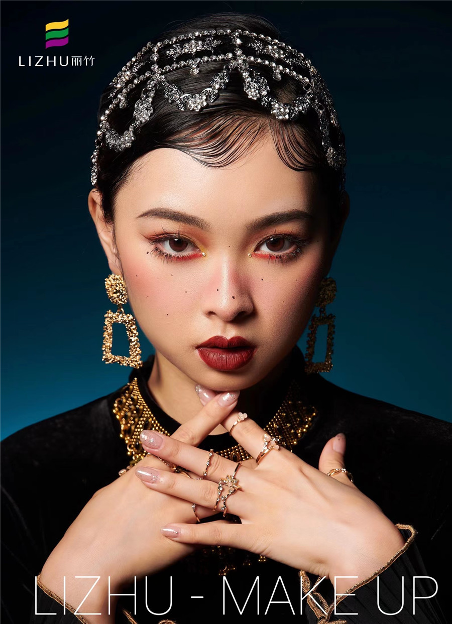 廣西彩妝化妝造型學校、廣西彩妝培訓短期班作品---輕歐美妝容造型:自然而日常的妝容畫法,打造色彩濃烈的結(jié)構(gòu)式眼妝,加上重金屬blingbling飾品搭配,奢華復古又有微微野生感。如果你想在廣西學專業(yè)彩妝,那么歡迎你到廣西彩妝學校十大品牌-廣西彩妝師培訓班(麗竹彩妝師培訓班)參觀試聽!
