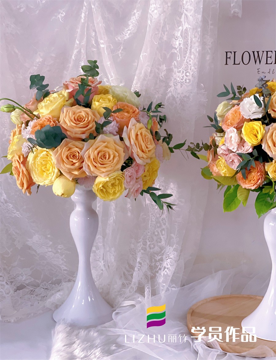 南寧花藝學(xué)校排行榜分享作品:半球形桌花(一)