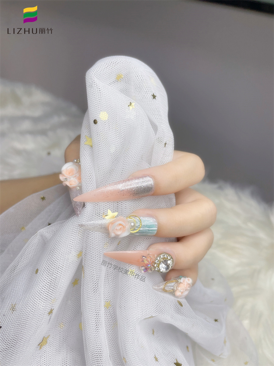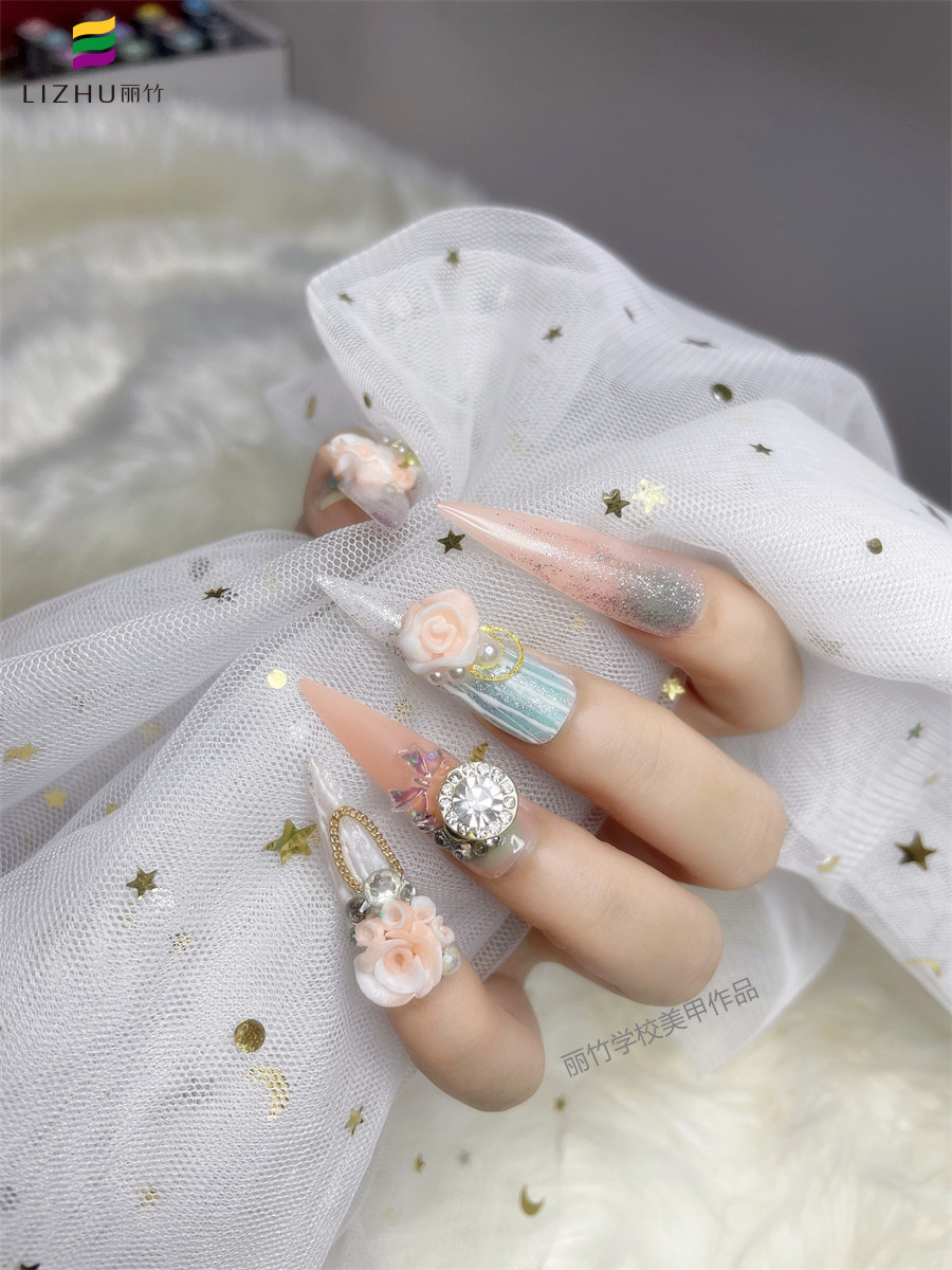 南寧學(xué)美甲哪家有實力?麗竹美甲學(xué)校用作品證明實力---鉆石雕花美甲(二)
