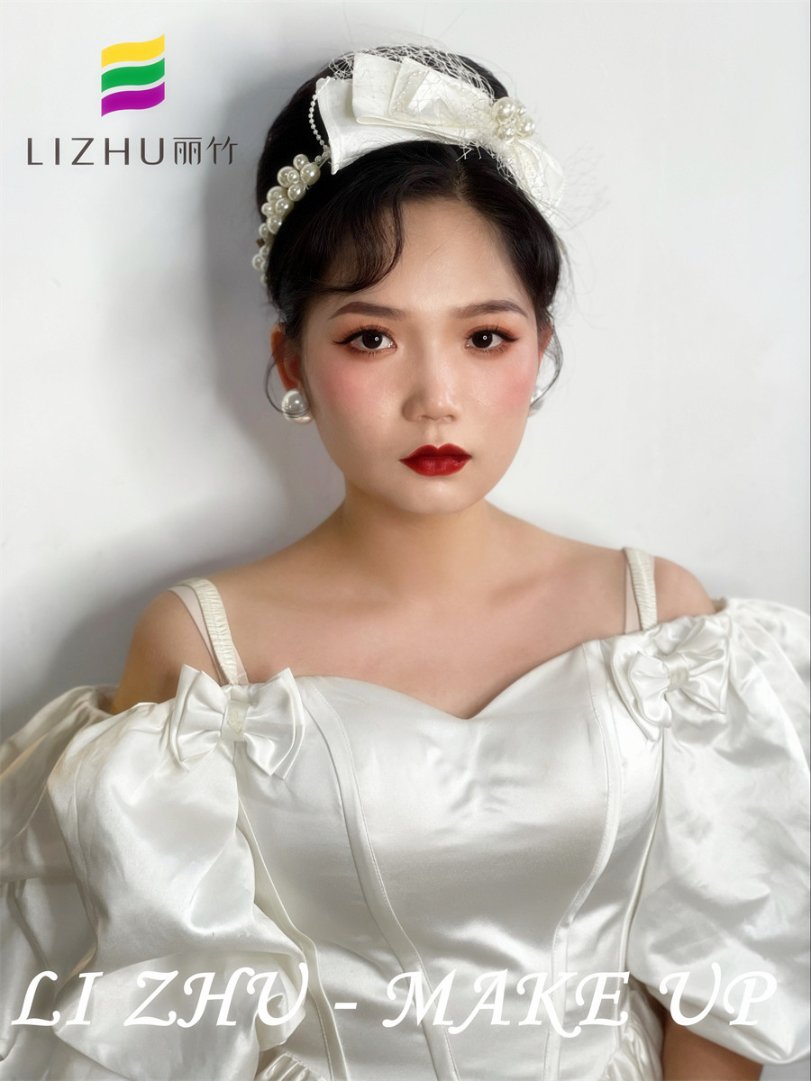 南寧新娘培訓班、南寧化妝學校新娘妝作品---赫本風新娘造型:干凈整潔的赫本包,搭配珍珠發(fā)箍點綴,素雅精致的清透妝容,時尚簡約又不失優(yōu)雅。想零基礎學新娘妝?想知道南寧哪里可以學新娘妝?歡迎到南寧化妝學校前十名麗竹學校彩妝專業(yè)參觀試聽!