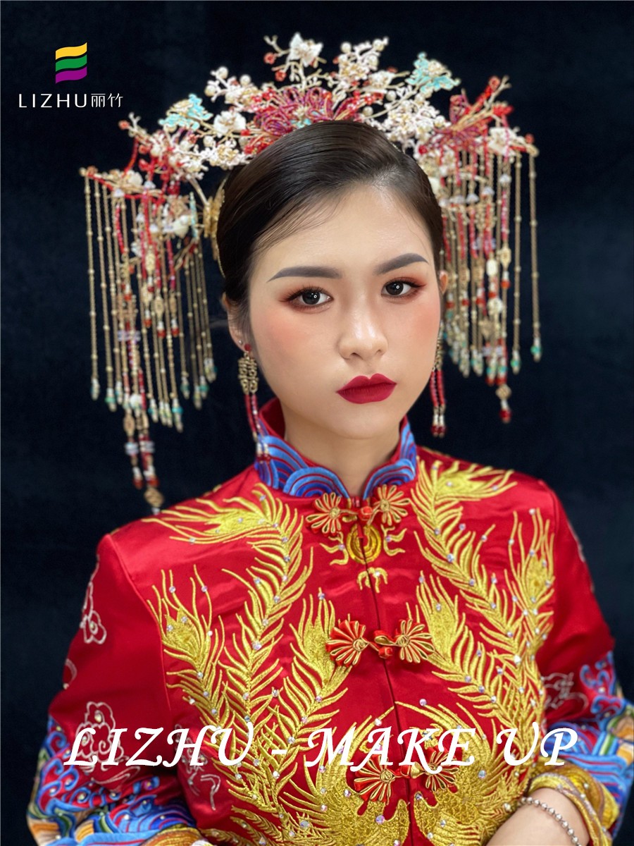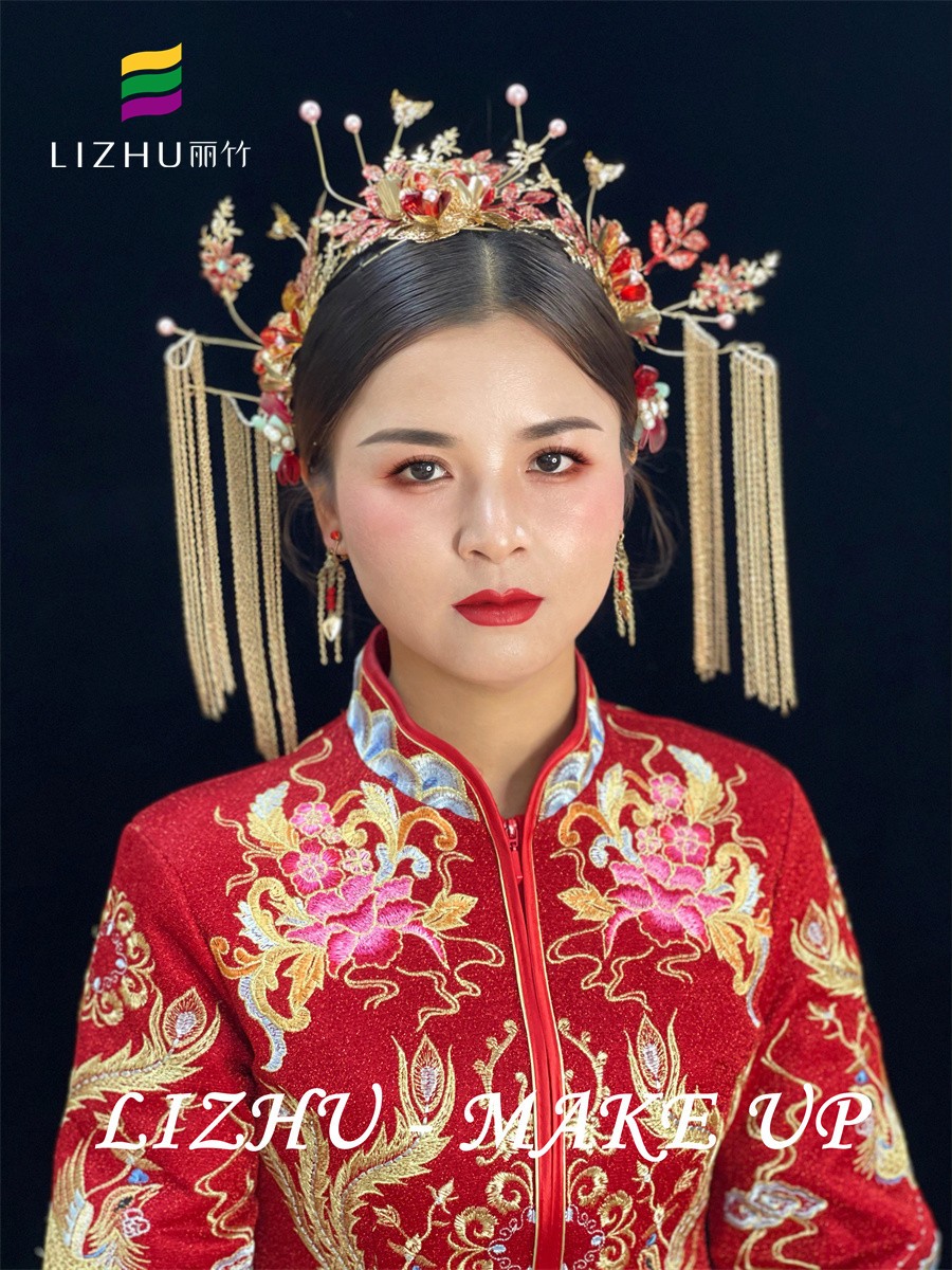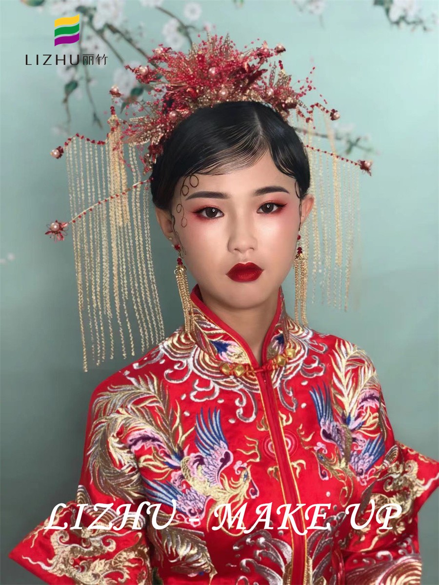 南寧哪里教化妝好?麗竹化妝學校用作品證明:國風秀禾新娘造型(一)
