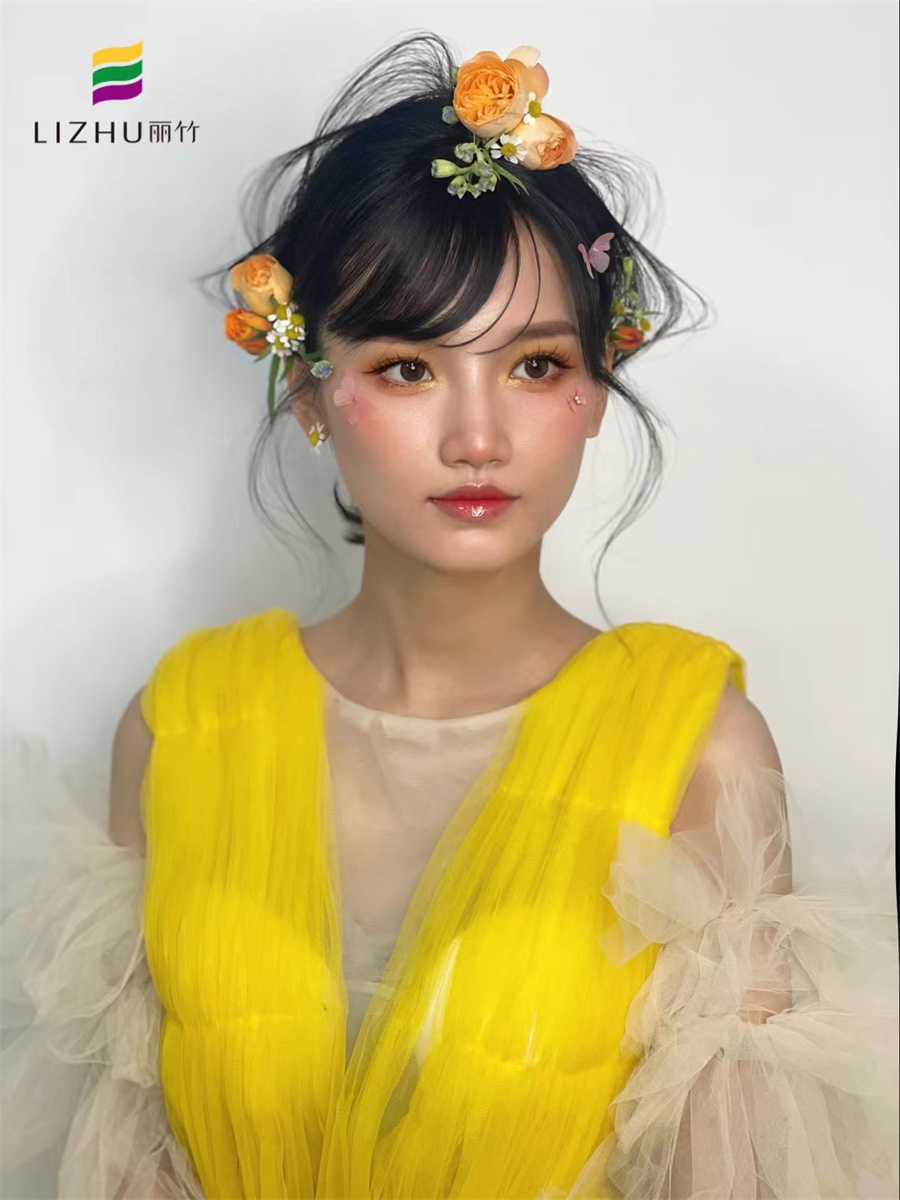 廣西美妝技術(shù)學校-麗竹美妝學校作品:森系鮮花造型(一)