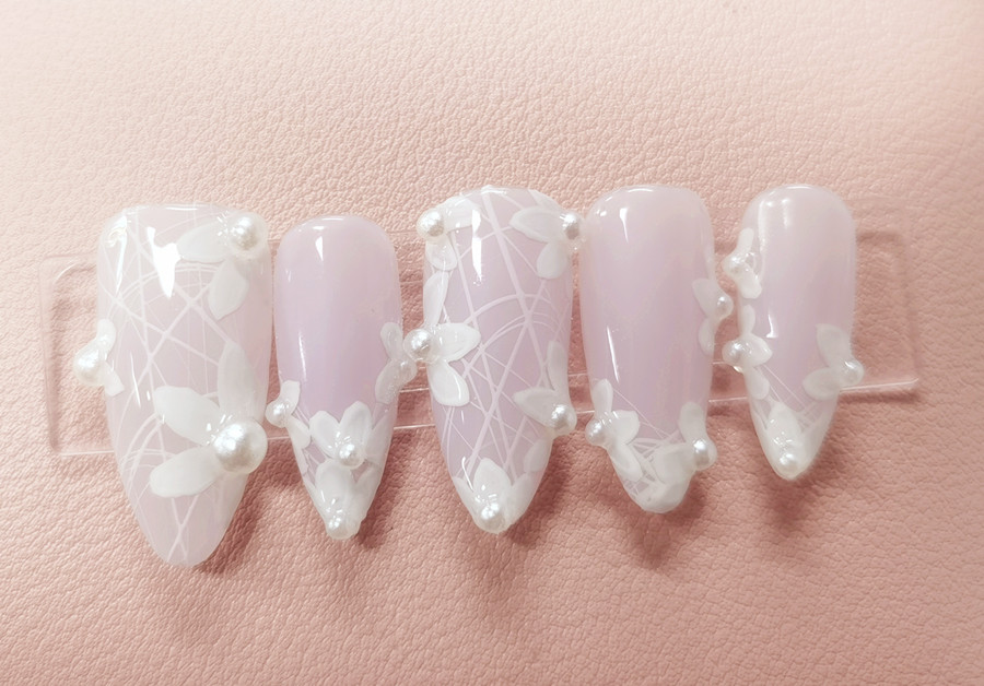 南寧美甲學(xué)校一共有幾個?請看麗竹美甲培訓(xùn)班學(xué)員作品---珍珠飾品美甲