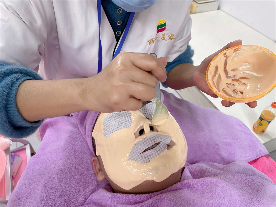 南寧學(xué)面部皮膚管理、南寧美容培訓(xùn)面部護(hù)膚:提起面部補(bǔ)水,想必大家都會(huì)選擇通過敷面膜去給肌膚補(bǔ)充水份和營(yíng)養(yǎng)。其中,相對(duì)于其他類型的面膜來說,敷軟膜粉清潔和補(bǔ)水效果則較為明顯。 而現(xiàn)在南寧美容皮膚管理學(xué)校(麗竹皮膚管理全科班)的同學(xué)們正在進(jìn)行敷軟膜粉的真人實(shí)操練習(xí),就讓我們?nèi)ヂ犅牽捶筌浤し鄣暮锰幇桑?br/>