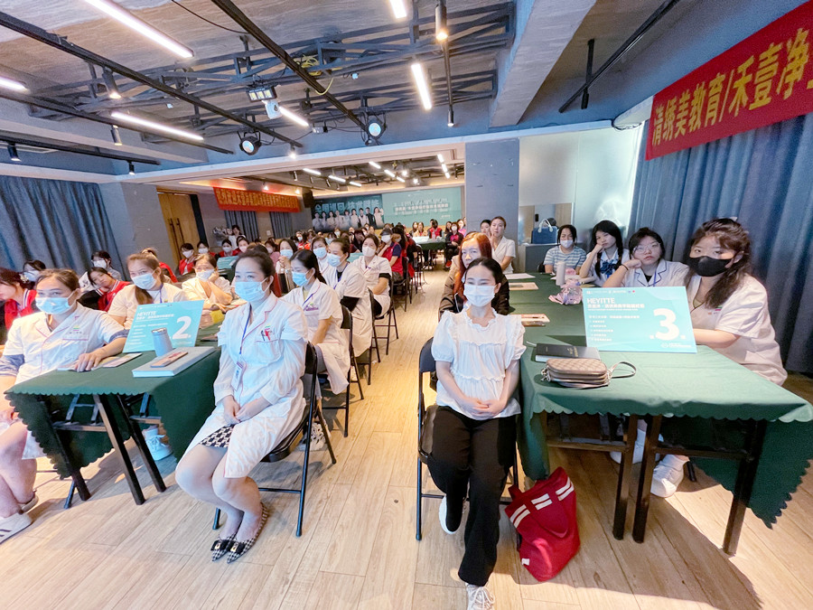 廣西南寧美業(yè)培訓(xùn)學(xué)校-南寧麗竹學(xué)校攜手清繡美教育 | 眾禾集團(tuán) | 禾壹凈品牌共同舉辦的輕療膚賦能技術(shù)會(huì)(南寧站)專場(chǎng)課程(簡(jiǎn)稱:麗竹學(xué)校輕療膚課程),如約在4月18日火熱開(kāi)啟啦!現(xiàn)場(chǎng)不僅有美容,美甲,化妝班的在校學(xué)員,也有很多想要引進(jìn)新技術(shù)的店家,將近百人的現(xiàn)場(chǎng),氣氛熱烈高漲。