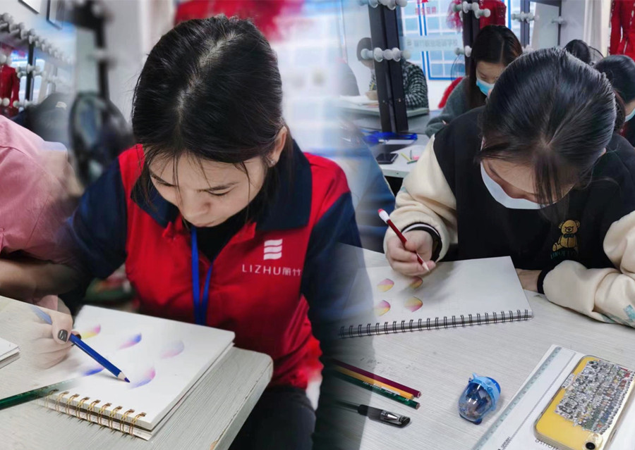 所以,在進(jìn)行真人操作之前,南寧化妝基礎(chǔ)班(麗竹化妝基礎(chǔ)班)的學(xué)員現(xiàn)在就在玉老師的指導(dǎo)進(jìn)行紙上眼影繪畫(huà)練習(xí)。還原整個(gè)眼皮、眼窩的形狀,學(xué)員們按照理論課上學(xué)習(xí)到的內(nèi)容先進(jìn)行輪廓大小繪畫(huà),然后在使用棉簽,眼影刷等化妝工具蘸取眼影在紙上進(jìn)行暈染,做到眼影的顏色層層遞進(jìn),自然通透就可以啦!