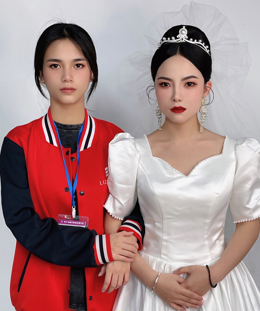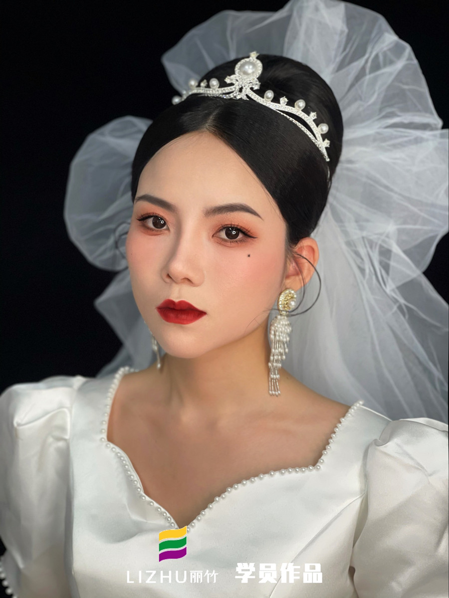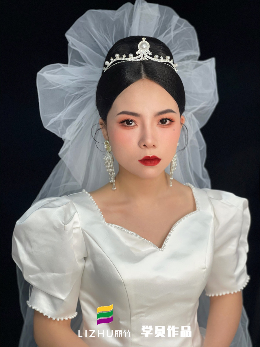 麗竹學(xué)校為期2個(gè)月的化妝培訓(xùn)現(xiàn)在已經(jīng)迎來畢業(yè)季,在這段時(shí)間里,學(xué)員們由零起步開始學(xué)習(xí),直到現(xiàn)在已經(jīng)可以獨(dú)立完成整個(gè)妝容造型的打造。下面,就一起來看看南寧彩妝造型學(xué)校學(xué)員寧婉茜的畢業(yè)作品---蓬蓬頭紗新娘造型吧!