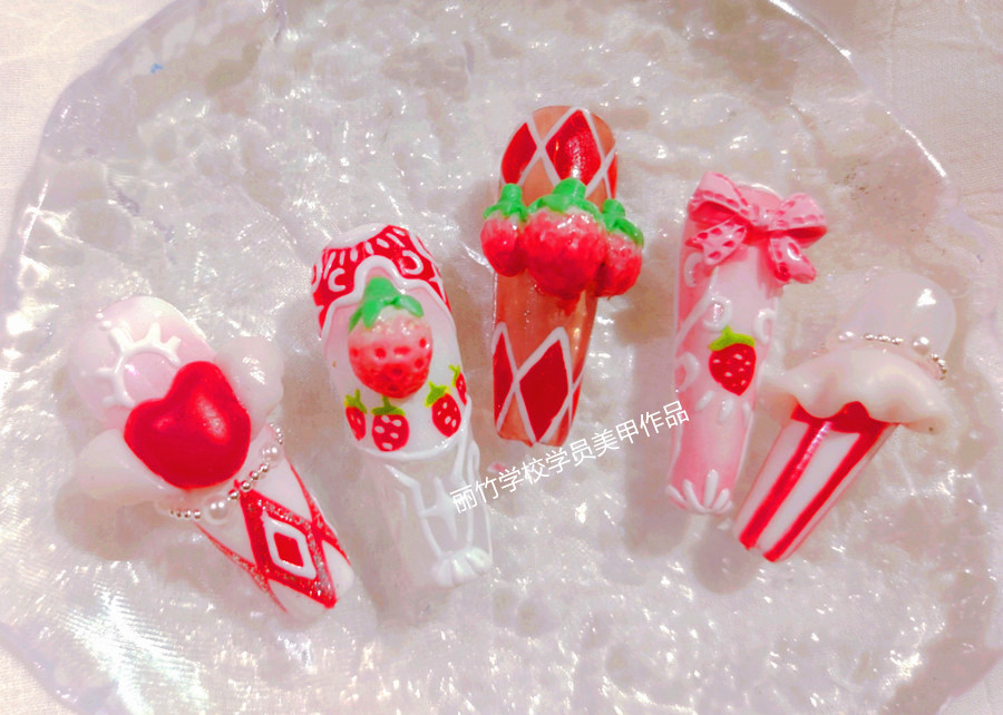 草莓洛可可美甲,廣西美甲培訓(xùn)課堂作品