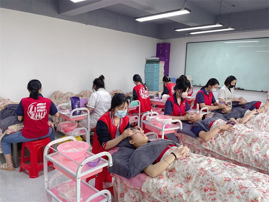 美容師考證、廣西美容師資格證書考點:隨著廣西美容培訓(xùn)-麗竹學(xué)?!睹廊輲煛仿殬I(yè)資格證正式考核的時間越來越近,近日,學(xué)校再次組織參與考試的美容,化-妝,美甲專業(yè)的學(xué)員們舉行了考試前的美容手法實踐模擬。
