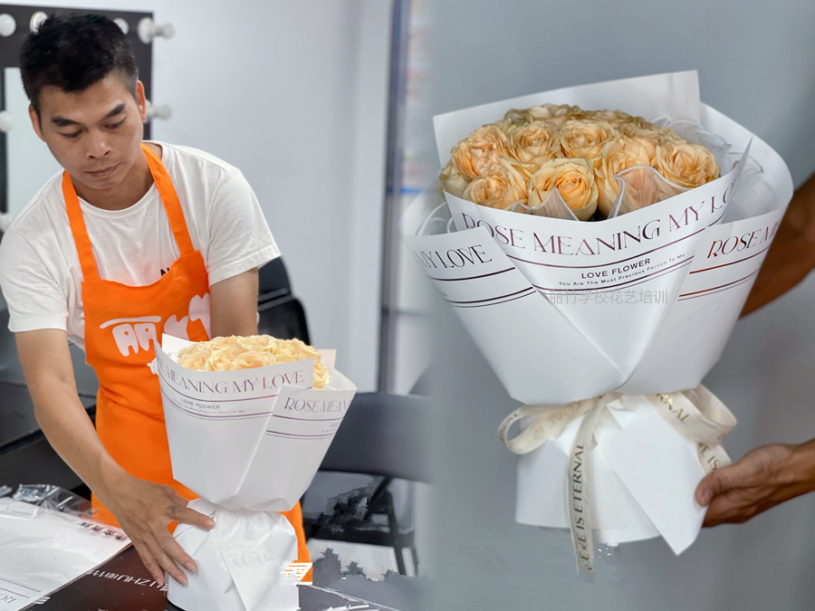制作圓形玫瑰花束教程,零基礎(chǔ)學(xué)花藝培訓(xùn)