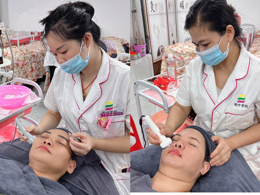 廣西美容培訓(xùn)儀器---學(xué)員操作儀器進行面部管理