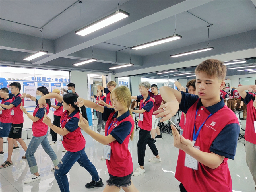 南寧美發(fā)基礎(chǔ)培訓(xùn),美發(fā)基礎(chǔ)班學(xué)員練習(xí)剪發(fā)站姿,修剪動作