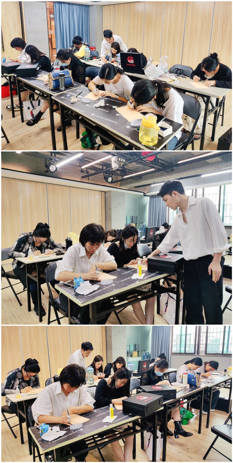 為期7天的《紋繡造型全能大師班》的課程已經(jīng)過半,同學(xué)們也在學(xué)習(xí)了色料的知識后,開始在仿皮上進(jìn)行眉眼唇的填色練習(xí),讓我們共同等待同學(xué)們進(jìn)行真人實操的練習(xí)吧!