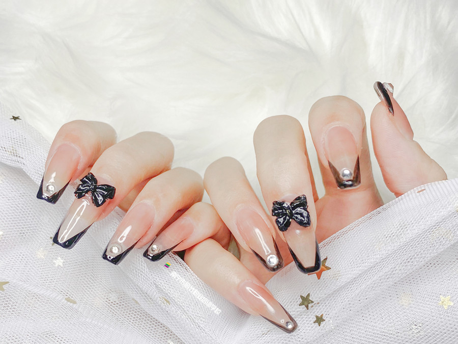 南寧美甲學(xué)校學(xué)員作品:蝴蝶結(jié)法式美甲