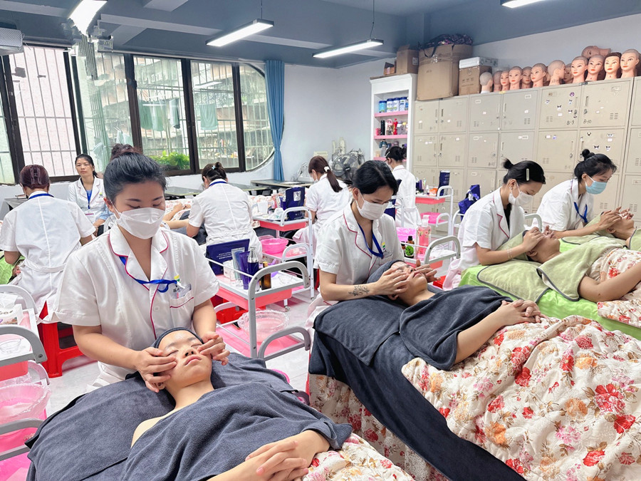 面部護理、南寧學皮膚管理推薦:面部肌膚的管理,是人們日常美容護膚項目中的核心。而通過對面部進行點按操作,可以有效改善皮膚狀態(tài),緩解皮膚細紋的生長?,F(xiàn)在,不防和我們一起走進南寧皮膚管理培訓(麗竹美容皮膚管理班)的課堂,看看韋老師是如何手把指導同學們練習如何改善面部細紋的手法練習吧!