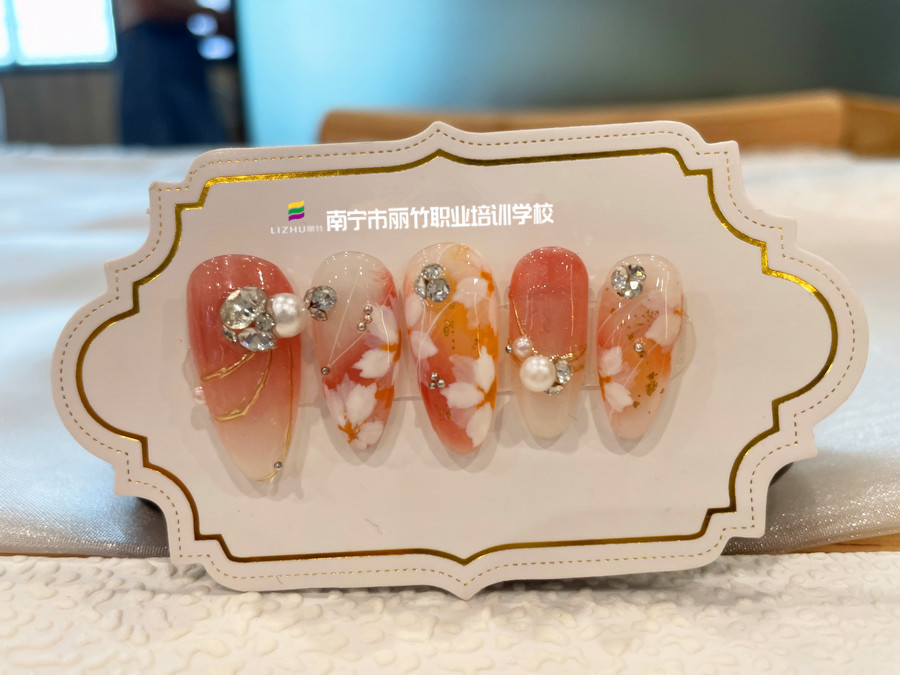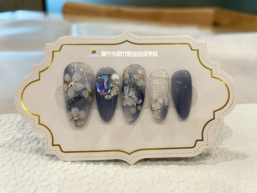 零基礎(chǔ)學(xué)美甲造型、南寧美甲進(jìn)修提升:在今天南寧美甲實(shí)訓(xùn)的課堂上,和我們一起看看正在南寧學(xué)美甲造型(麗竹美甲培訓(xùn))學(xué)員作品---暈染花卉美甲吧!如果你近期有學(xué)美甲技術(shù)的計(jì)劃,建議你趕緊趁著麗竹學(xué)校美甲專業(yè)正在進(jìn)行年末感恩答謝會學(xué)費(fèi)特惠活動仍在進(jìn)行中,趕緊通過下面的方式聯(lián)系我們報(bào)名吧!