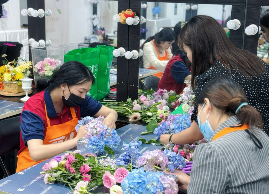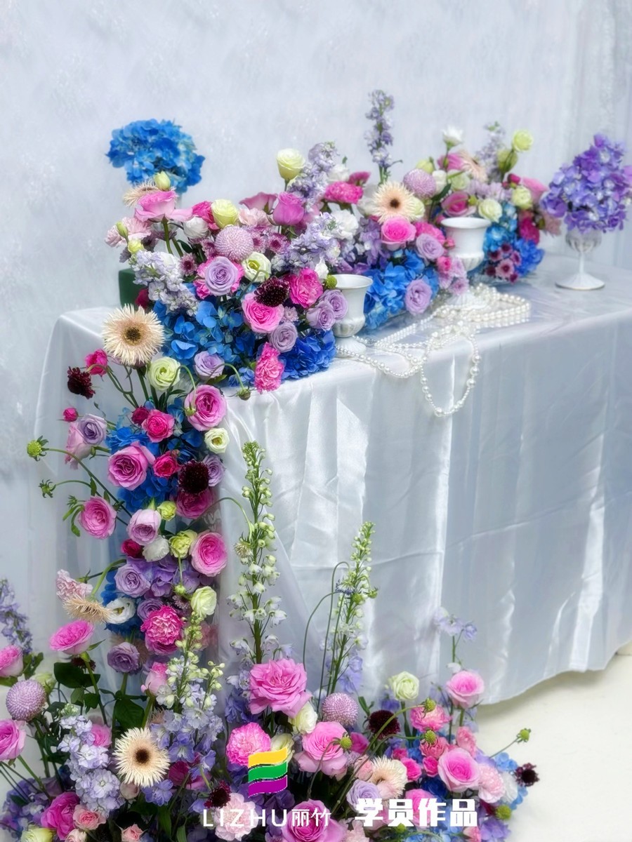 學(xué)花藝沒經(jīng)驗(yàn)、廣西花藝培訓(xùn)排名:廣西花藝師學(xué)校(麗竹花藝師學(xué)校)就和大家一起去看看廣西花藝專業(yè)課程里關(guān)于什么是瀑布桌花的內(nèi)容吧!選用西式長條桌,之后在桌面中間將已經(jīng)設(shè)計好的花束,有序長長地鋪陳開來。之后,在桌子的兩頭特意設(shè)計成瀑布桌花鏈接地面,這樣能夠更好營造浪味唯美的氛圍。