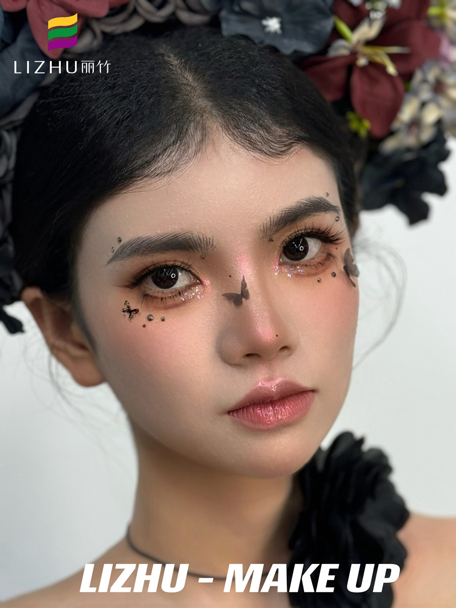 蝴蝶玉碎配以鉆飾品點綴眼妝