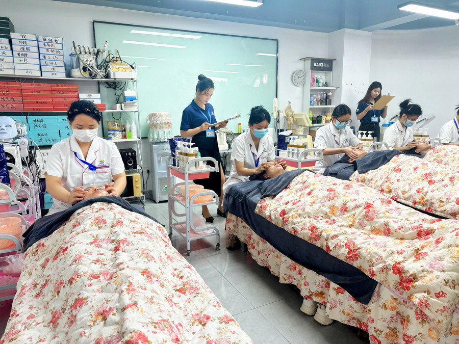 南寧美容考試、南寧學美容面部護膚:為了檢驗同學們每個階段的學習狀況,南寧美容護膚學校(麗竹美容護膚學校)舉行了美容護理基礎(chǔ)班的升班考核。下面,就和我們一起去看看南寧美容培訓班同學需要考核哪些內(nèi)容吧!