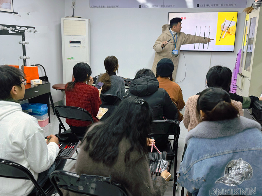 南寧化妝初學(xué)、南寧化妝學(xué)校十大排行榜:如果你學(xué)化妝從零開始,那你上的第 一 節(jié)就必須先從認(rèn)識(shí)化妝工具極其用法開始。在南寧化妝基礎(chǔ)培訓(xùn)班的教室里,玉老師正在給剛剛?cè)雽W(xué)的同學(xué)講解相關(guān)知識(shí),感興趣的小伙伴一起和我們?nèi)タ纯窗桑?/span>
