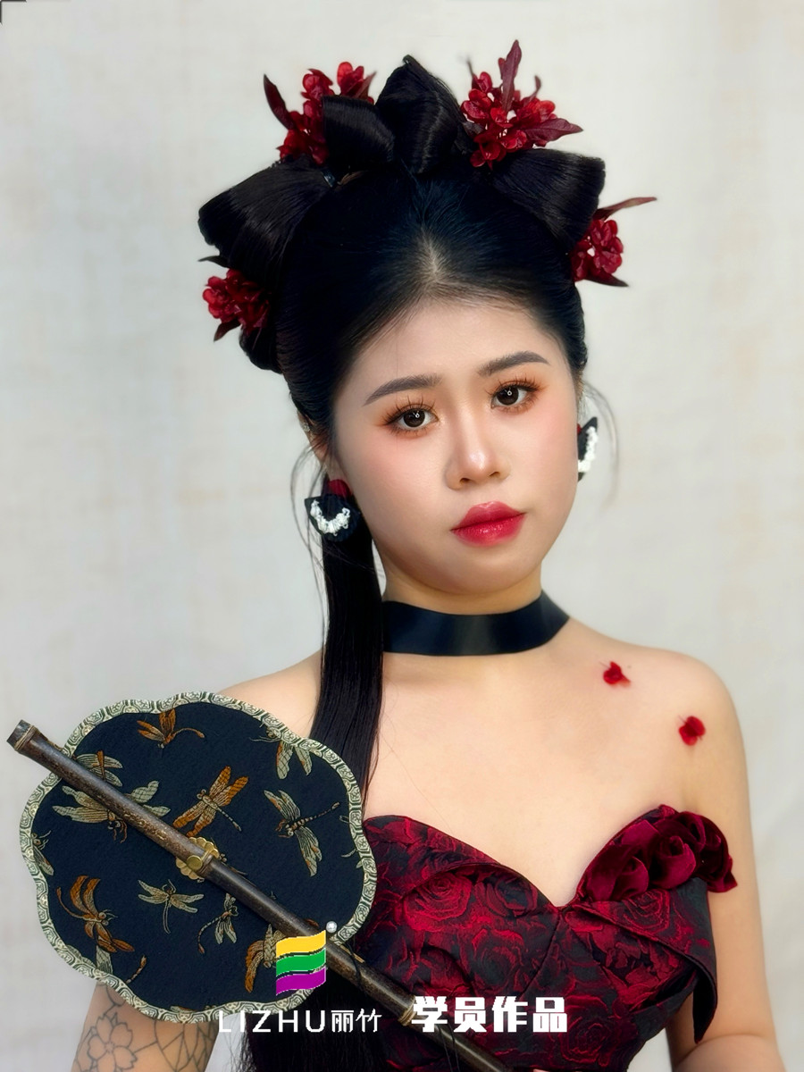 南寧化妝高彩、南寧高彩化妝學(xué)校(麗竹高彩化妝學(xué)校)學(xué)員作品---新中式造型。之前如果曾因?yàn)閷W(xué)費(fèi),課時(shí)等原因一直在猶豫不決?南寧高彩化妝學(xué)校推薦你可以趁著麗竹高彩化妝學(xué)校正在進(jìn)行學(xué)費(fèi)特惠活動(dòng),趕緊到校了解詳情,參觀和試聽(tīng)。