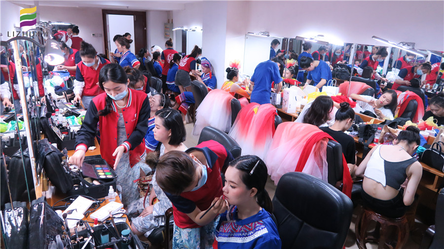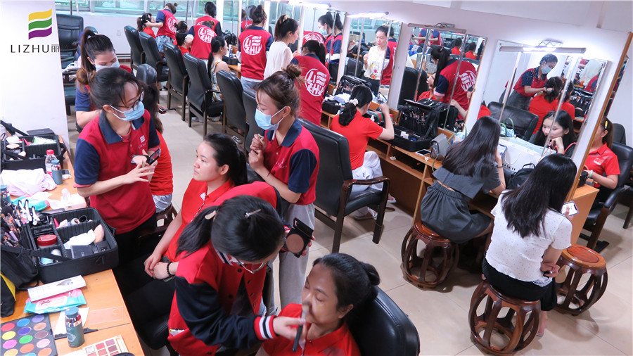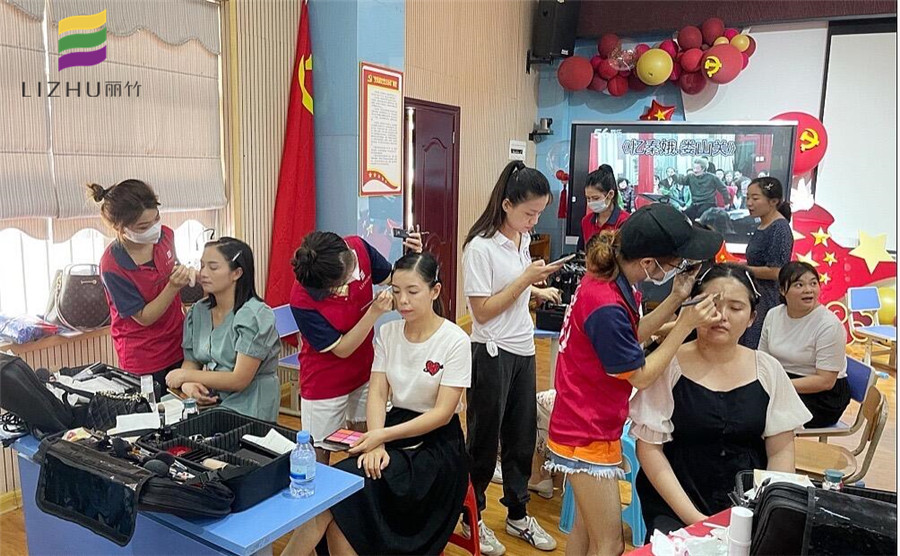 6月29日,麗竹學校組織化妝班學員為首府南寧紀檢監(jiān)察系統(tǒng)慶祝中國共產(chǎn)黨成立100周年合唱比賽提供妝造服務(wù)。
