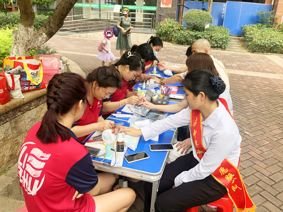 免費(fèi)美甲活動(dòng),社區(qū)美甲活動(dòng):也許你曾經(jīng)在自己所在的小區(qū)里,看到過(guò)一群身穿紅色,上面印有"LIZHU”字樣的志愿者們,他們正在低頭認(rèn)真的幫居民進(jìn)行美甲服務(wù),這群人就是南寧美甲學(xué)校志愿者(麗竹美甲培訓(xùn)班)。近日,她們就來(lái)到了隆源公館為大家進(jìn)行免費(fèi)美甲修手,涂單色。