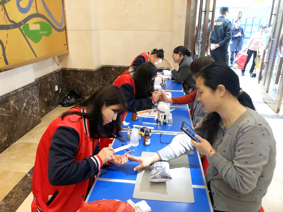 南寧美甲外出實踐、美甲實踐活動:三月,是“學雷鋒”活動月。南寧美業(yè)職業(yè)技能學校-麗竹學校組織各班志愿者奔走于市區(qū),城鎮(zhèn)周邊部,為大家提供力所能及的服務。近日,在黃老師的帶來領,南寧美甲師造型班的志愿者們就來到華南城為居民進行免費美甲。
