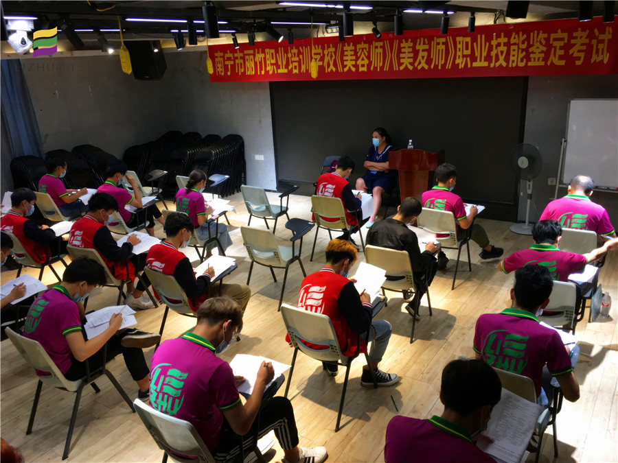 南寧美容美發(fā)學校:麗竹學校作為南寧市職業(yè)技能定點培訓機構,于7月26日在本校進行了“南寧市麗竹職業(yè)培訓學?!睹廊輲煛贰睹腊l(fā)師》職業(yè)技能鑒定”考試。