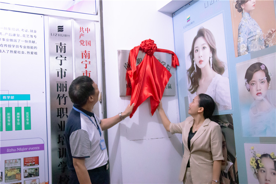 參加本次簽約揭牌儀式的嘉賓有:南寧麗竹職業(yè)培訓學校黨支部書記,校長王良友、南寧職業(yè)技術(shù)學院---共贏教學點校長徐穆英、南寧麗竹職業(yè)培訓學校副校長歐榮蘭、南寧麗竹職業(yè)培訓學校招生就業(yè)部主任潘偉平、南寧麗竹職業(yè)培訓學校教學部主任劉治才、南寧職業(yè)技術(shù)學院---市場招生辦教務監(jiān)督主任李容、南寧麗竹職業(yè)培訓學?;瘖y總監(jiān)玉可寧、南寧麗竹職業(yè)培訓學校美發(fā)組組長王姚芳、南寧麗竹職業(yè)培訓學校美容組組長韋紅蘭以及麗竹學校美容,美發(fā),美甲,化妝組老師。