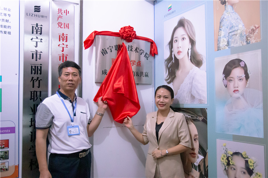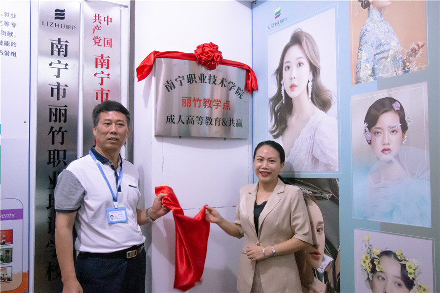 緊接著,在全體師生的共同見證下,王良友校長和徐穆英校長為南寧職業(yè)技術(shù)學院成人高等教育&共贏麗竹教學點揭牌,現(xiàn)場氣氛高漲,再次響起了熱烈的掌聲和喝彩聲。