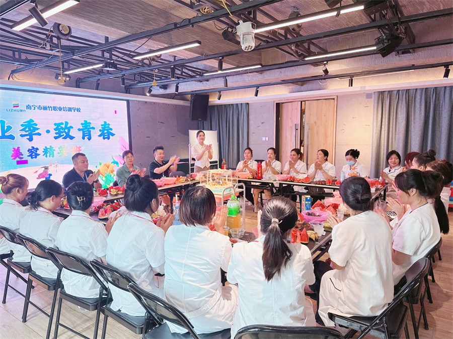 畢業(yè)座談會、廣西美容培訓班畢業(yè):畢業(yè)之際,廣西南寧美容專業(yè)學校-廣西美容技師班-麗竹學校美容專業(yè)以“畢業(yè)季·致青春”為主題,舉行了一場溫馨的畢業(yè)座談會,回憶和過往,暢談未來。祝愿所有從廣西美容專業(yè)培訓畢業(yè)的麗竹學子都能以渺小啟程,以偉大結束。